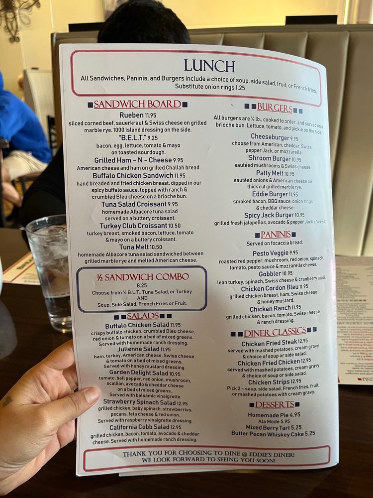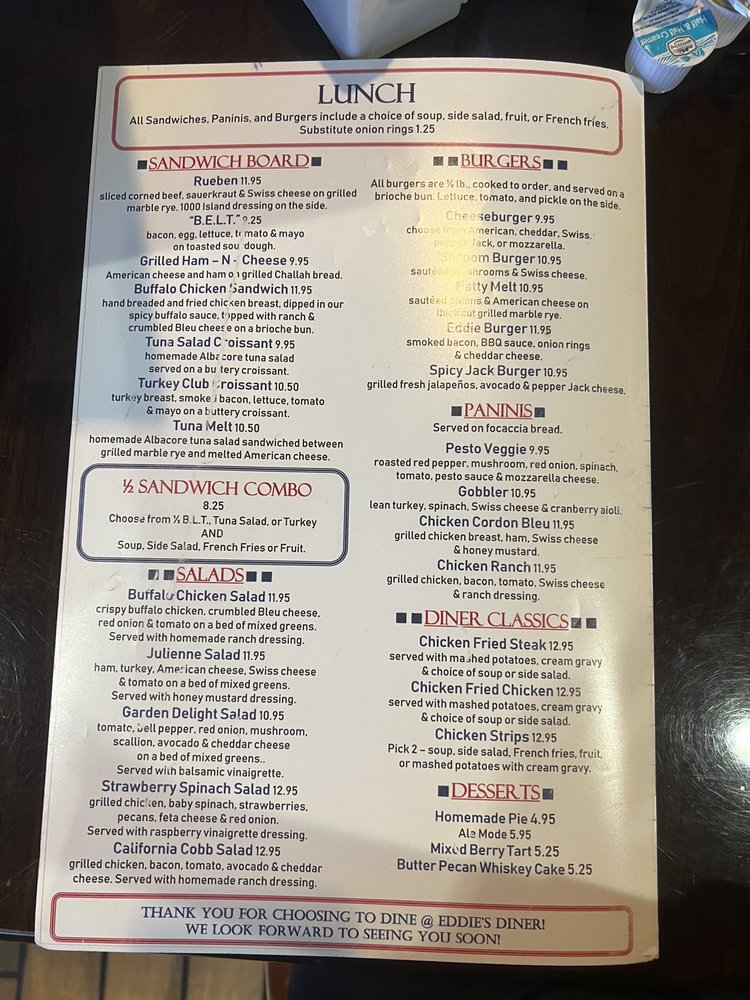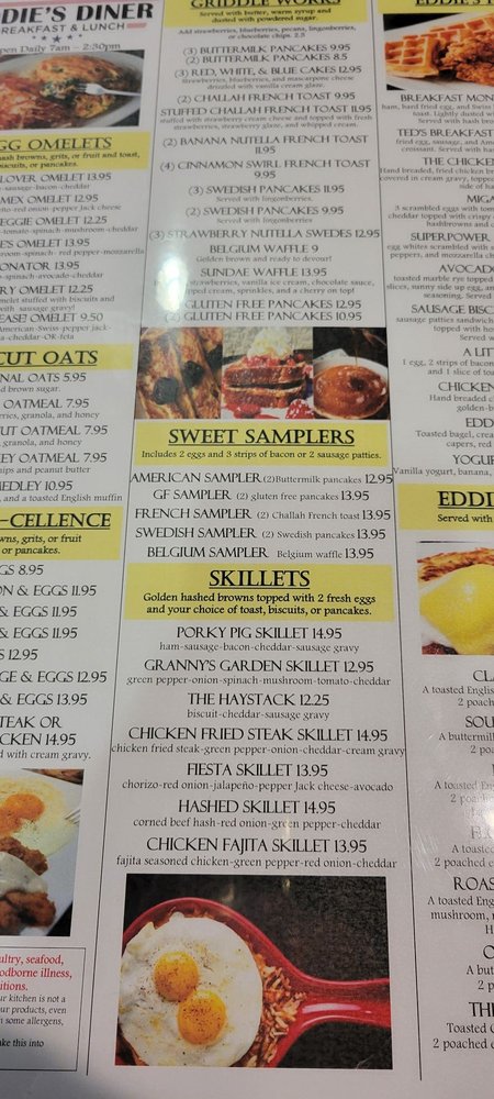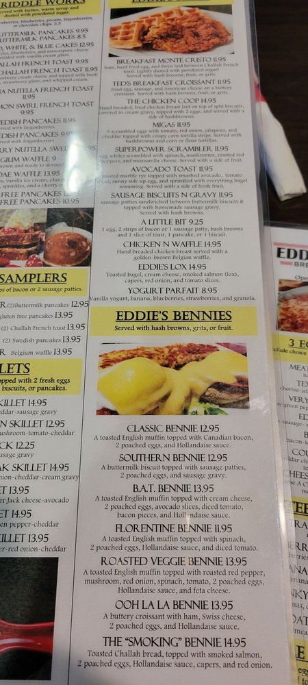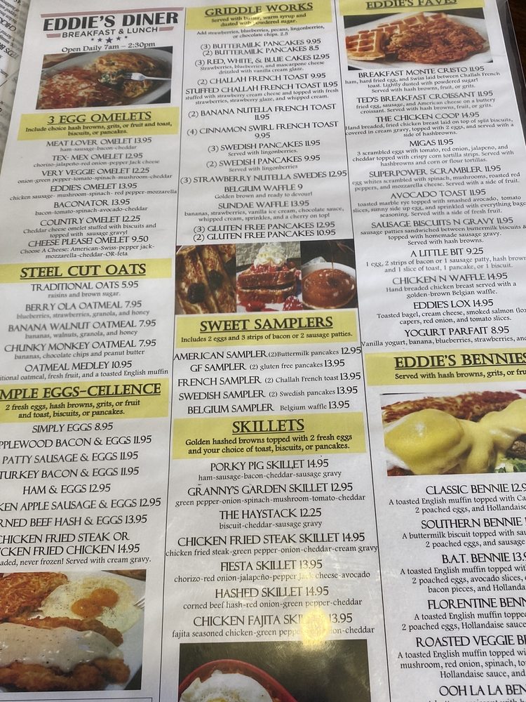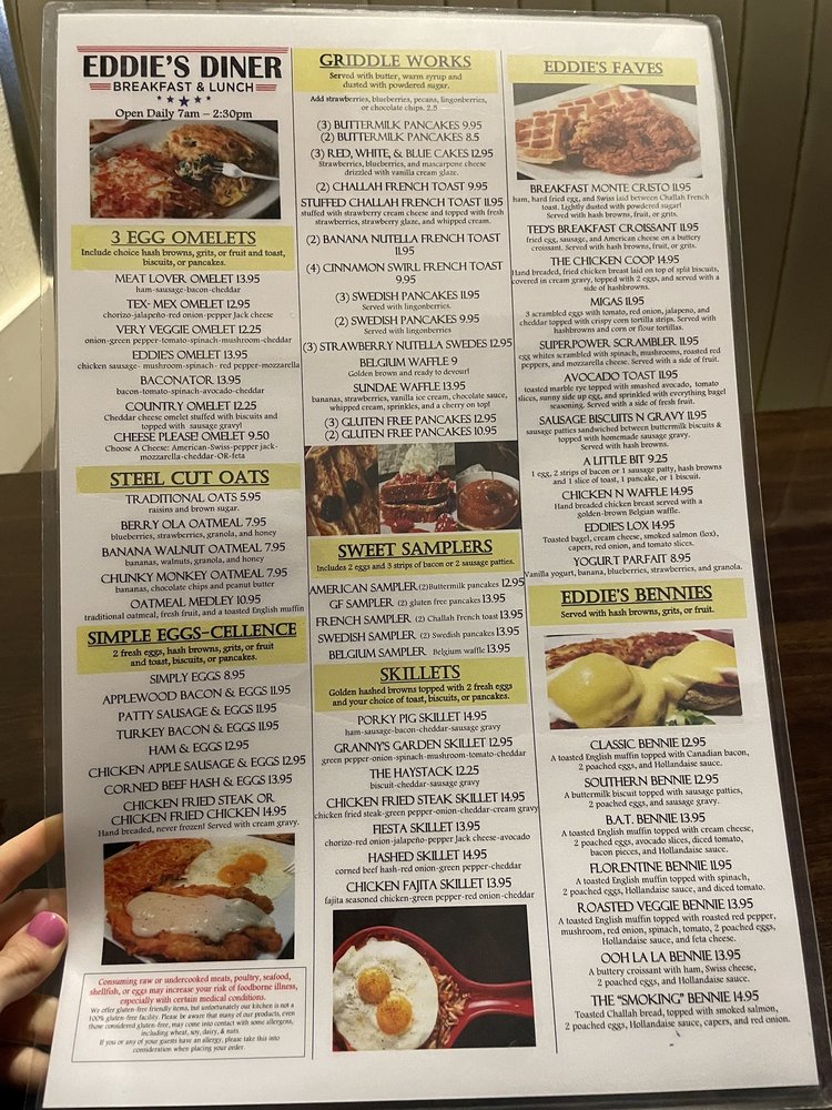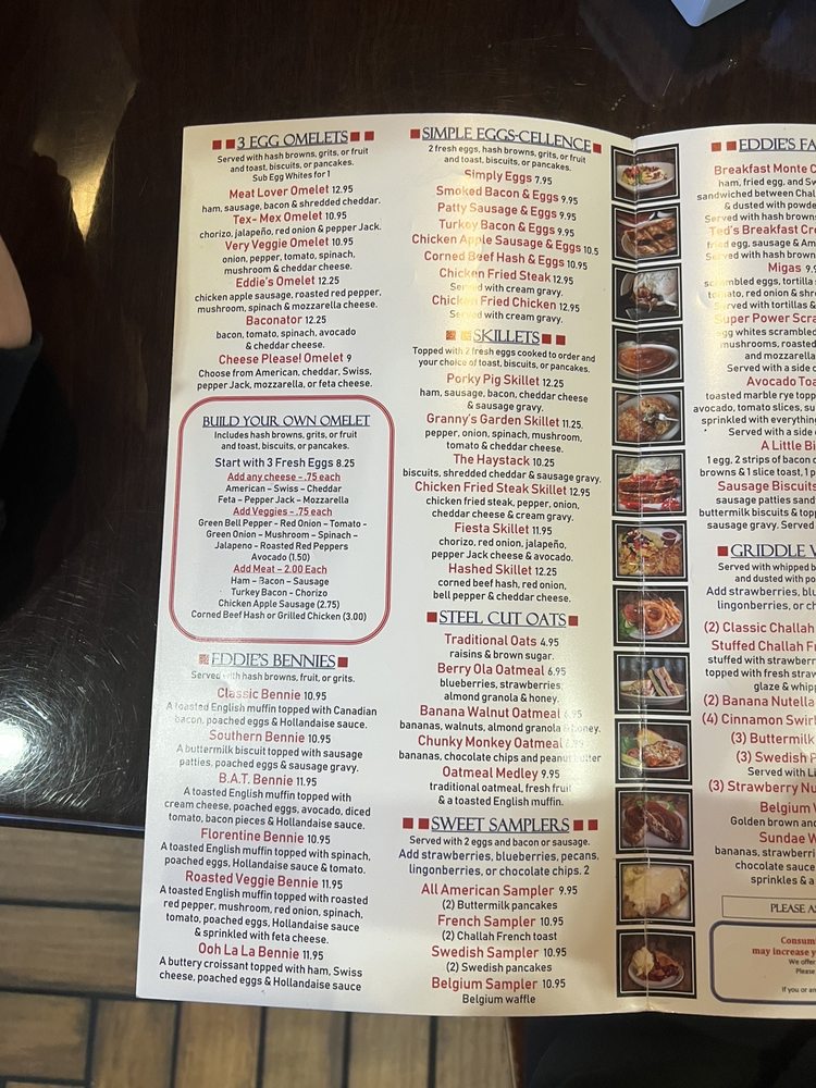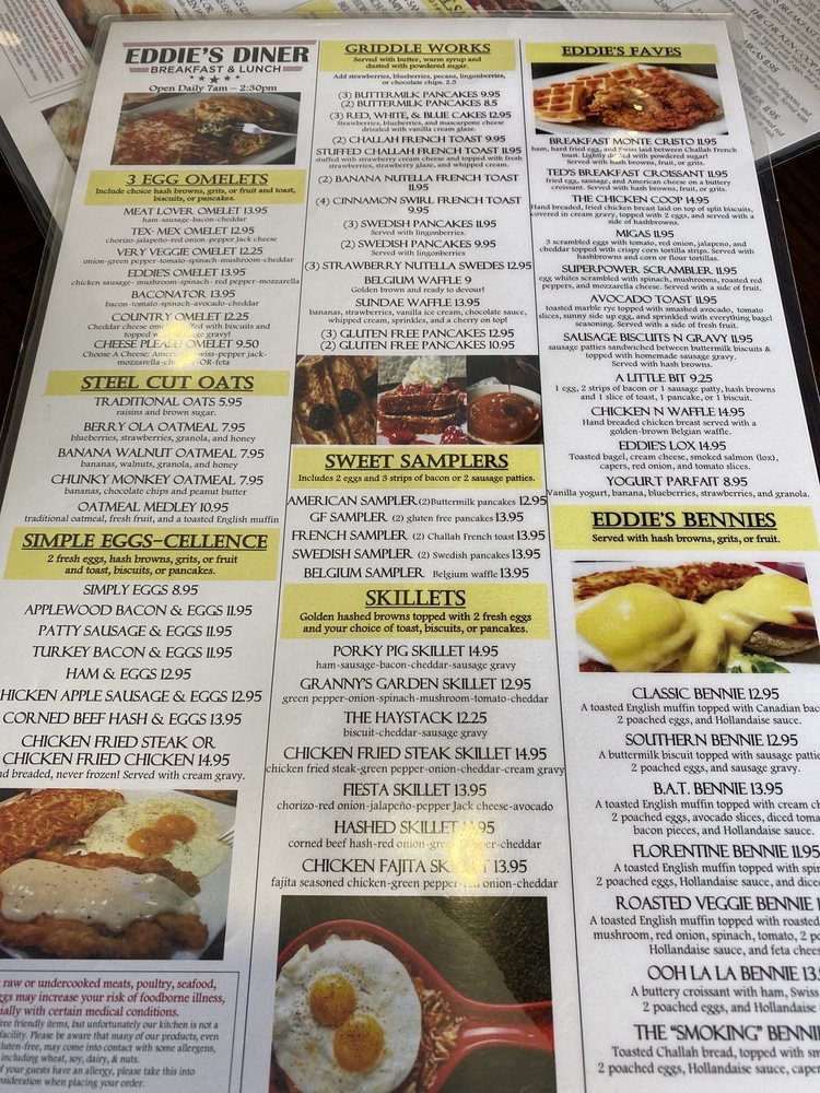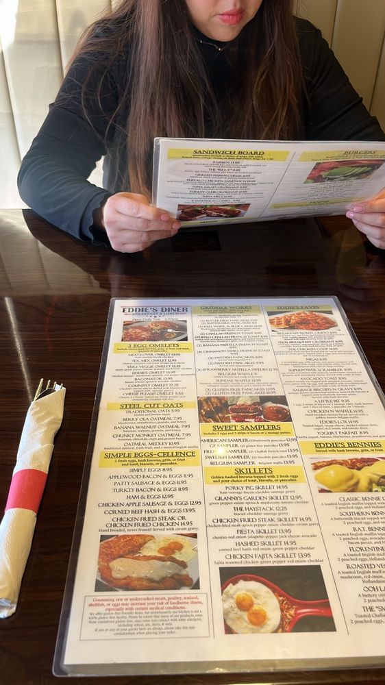 Eddie's Diner located in Plano, TX, offers a wide range of dining options and amenities. From vegan and vegetarian choices to wheelchair accessibility and outdoor seating, the diner caters to various preferences and needs. Customers praise the friendly staff, quick service, and delicious food such as bacon, eggs, hash browns, eggs Benedict, and blueberry pancakes. The cozy atmosphere and clean surroundings make diners feel right at home. With a diverse menu offering something for everyone, Eddie's Diner stands out as a neighborhood gem with a loyal following. Whether you're dining solo, with family, or friends, you can expect a great experience at Eddie's Diner.